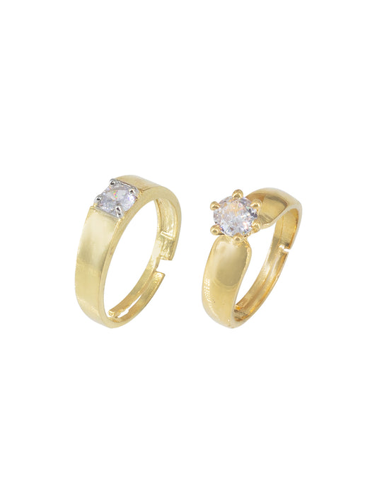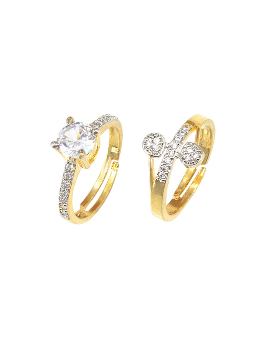 Set Of Two Gold Plated Solitaire American Diamond Trendy Adjustable Finger Rings
