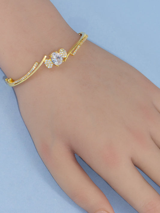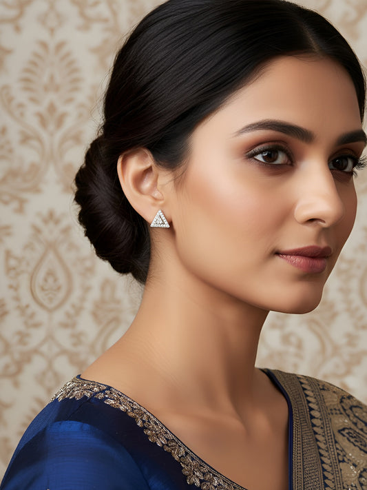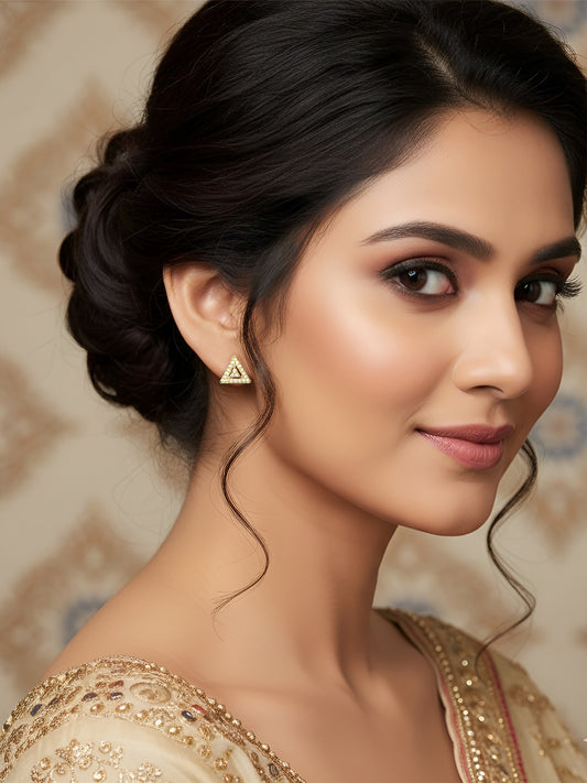Gold Plated American Diamond Triangular Stud Earrings for women