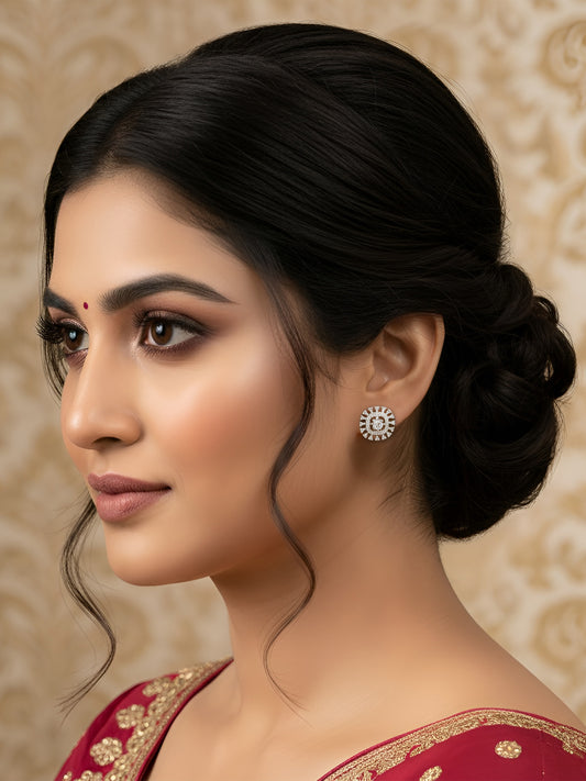 Rhodium Plated White AD & Pearl Stud Earrings for Women