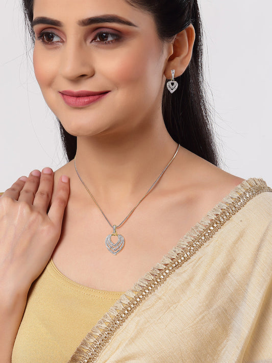 Gold Plated Heart American Diamond Trendy Pendant Set