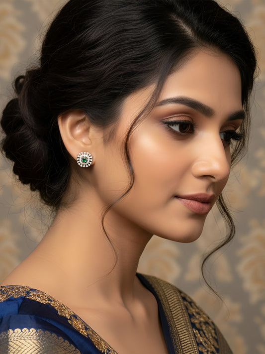 Gold Plated American Diamond Triangular Stud Earrings for women