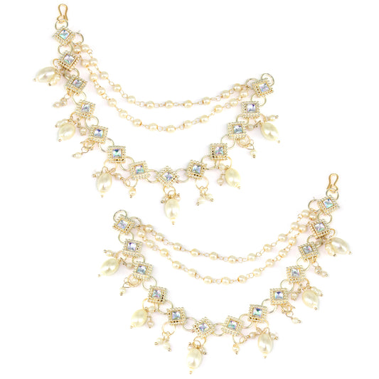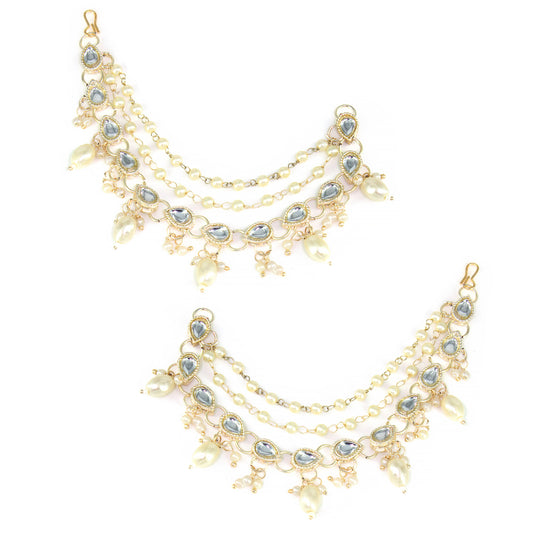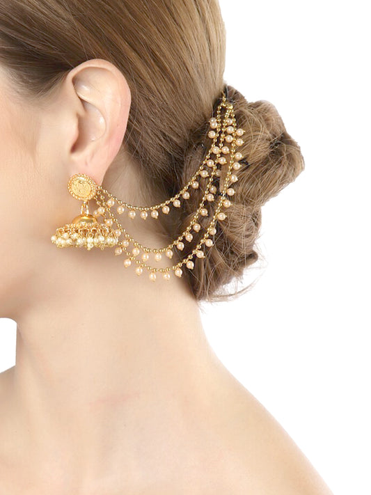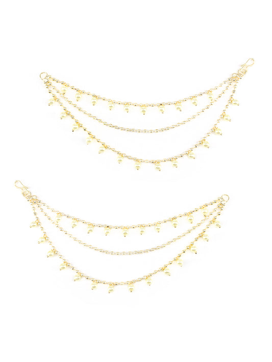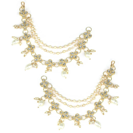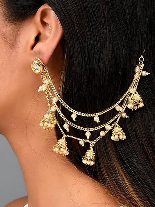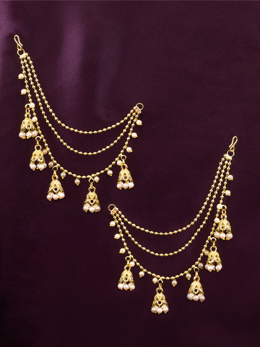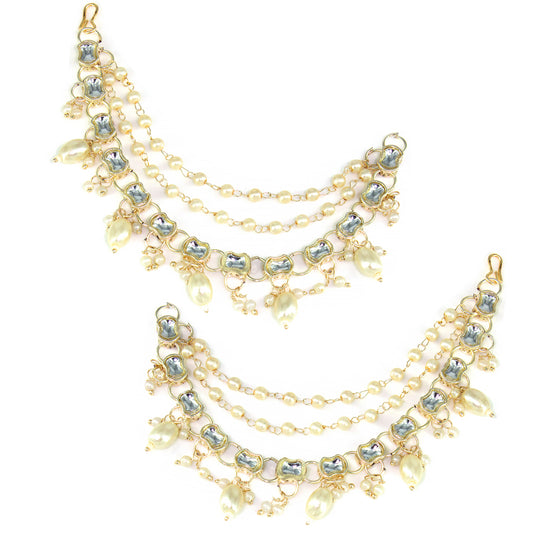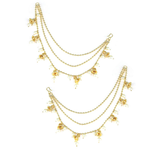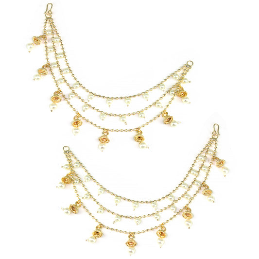 Bahubali Ear Chain 3 Layered with Small Pearl Beads