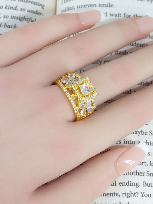 Floral Solitaire AD-Studded Adjustable Ring