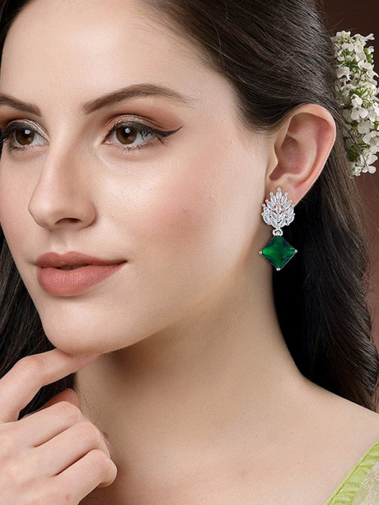 Rhodium Plated Green American Diamond Drop Trendy Jewellery Set
