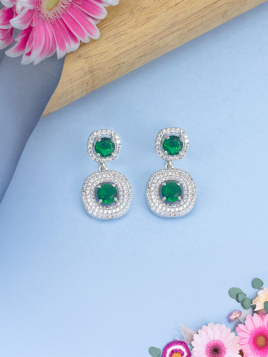 Rhodium Plated Green American Diamond Trendy Drop Earrings
