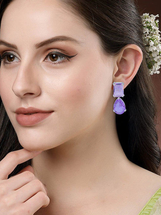 Rhodium Plated Purple American Diamond Teardrop Earrings