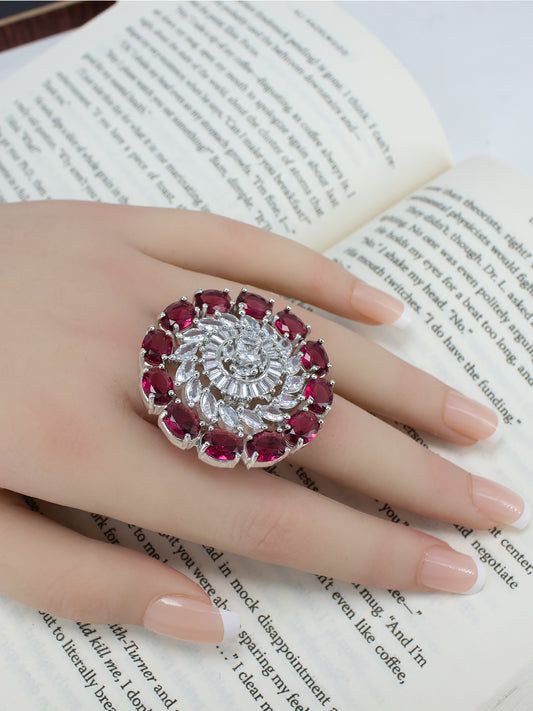 Ruby American Diamond Adjustable Cocktail Finger Ring For Women
