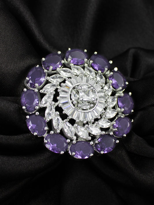 Purple AD Floral Adjustable Finger Ring