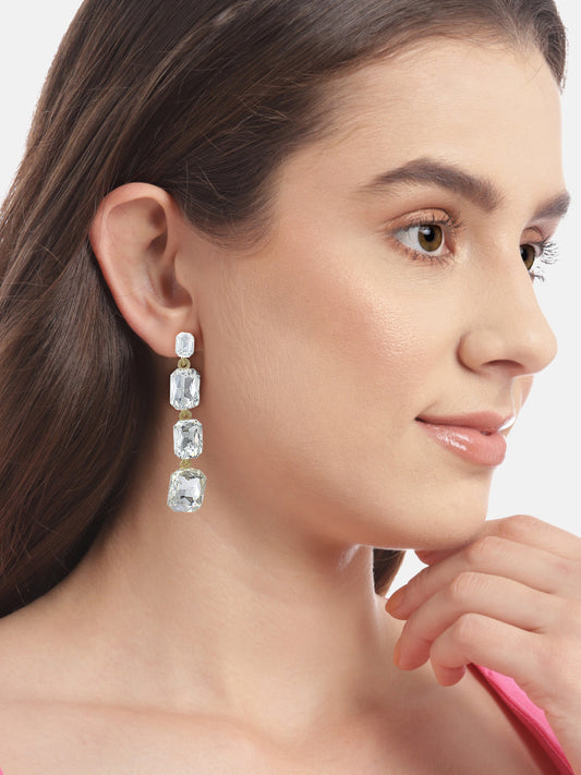 Silver Plated White Crystal Stones Studded Drop Earrings
