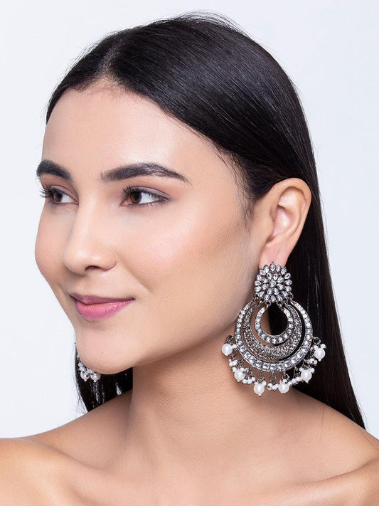 Floral Chandbaali Kundan & Beads Drop Earrings