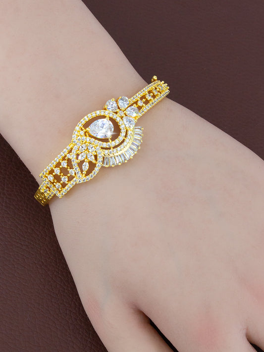 American Diamond Gold Plated Square Design Bracelet for Women and Girls