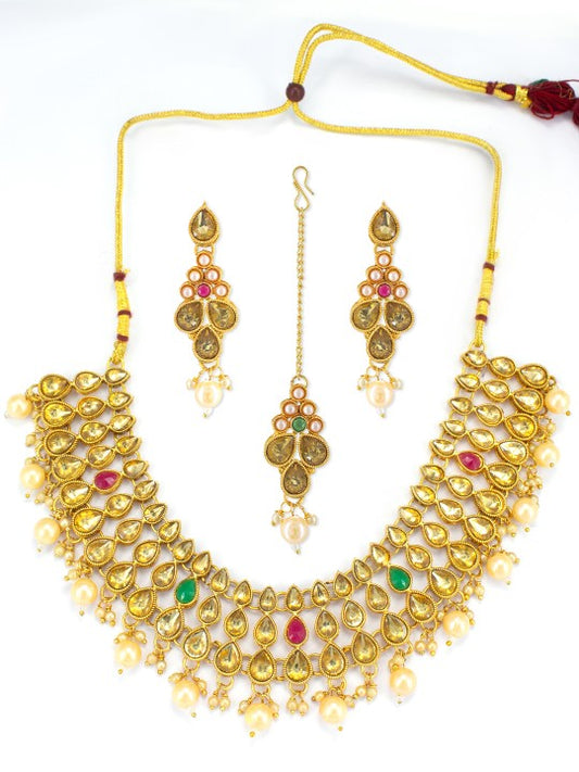 Gold Plated Kundan & Beaded Choker Jewellery Set