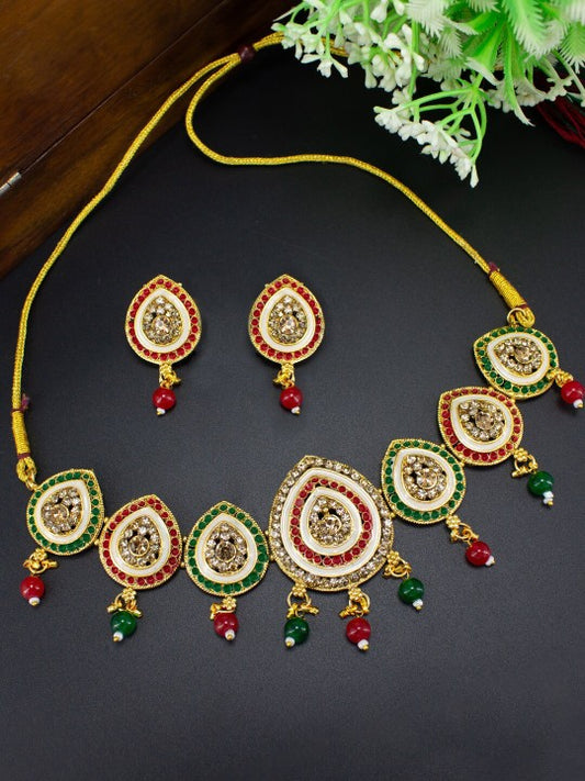 Gold Plated Red & Green Artificial Stones Jewellery Set