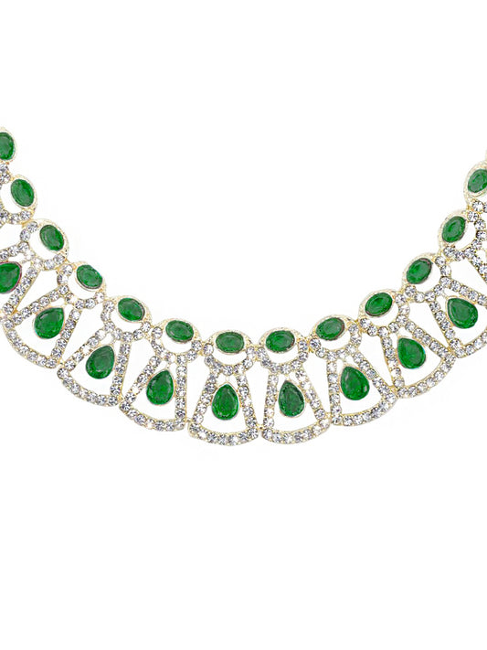 Green Rhodium-Plated American Diamond Studded Jewellery Set