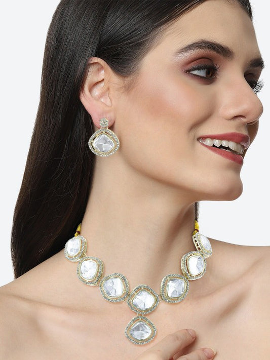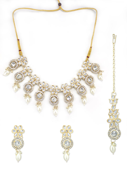 Kundan-Studded & Beaded Jhumka Earrings With Chain