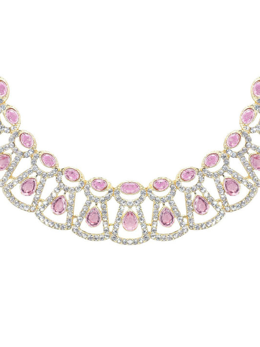 PRIVIU Rose Gold Plated Crystal Charm Pendant Chains Set for Girls (Pack of 5)