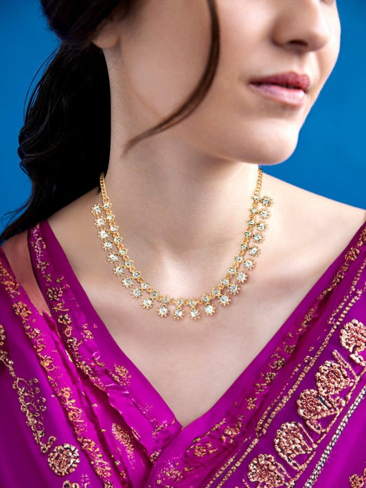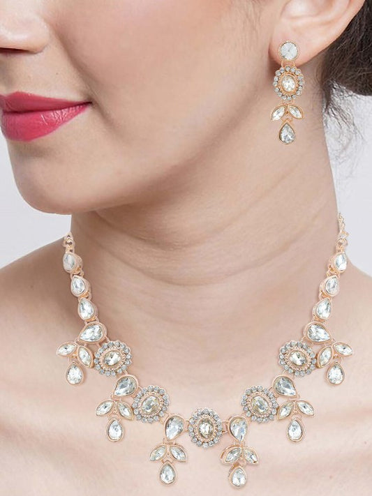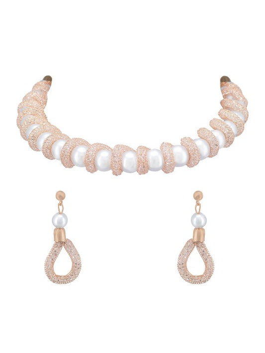 Rose Gold-Plated CZ Studded & Pearl Baeded Jewellery Set
