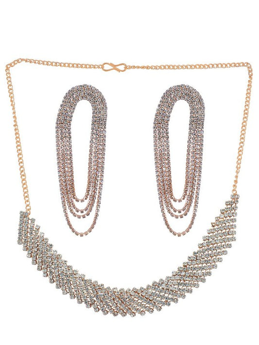 Rose Gold-Plated Cubic Zirconia-Studded Jewellery Set