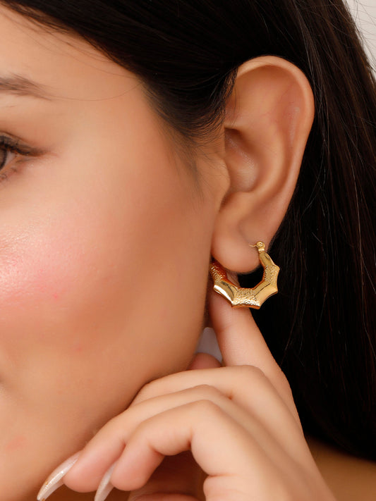 Stainless Steel Anti Tarnish Bamboo Hoop Earrings