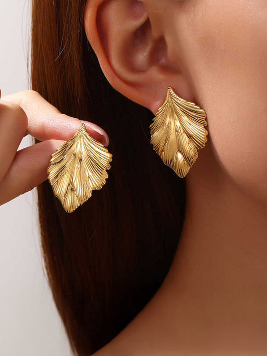 Stainless Steel Anti Tarnish Leaf Stud Earrings