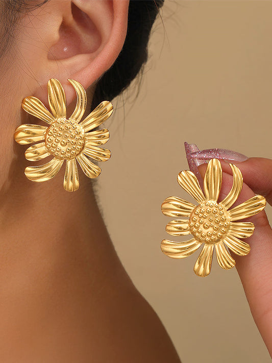Stainless Steel Anti Tarnish Floral Stud Earrings