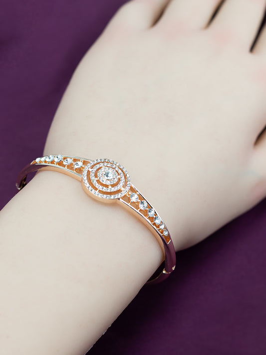 Rose Gold Plated Circular American Diamond Studded Stainless Steel Bracelet