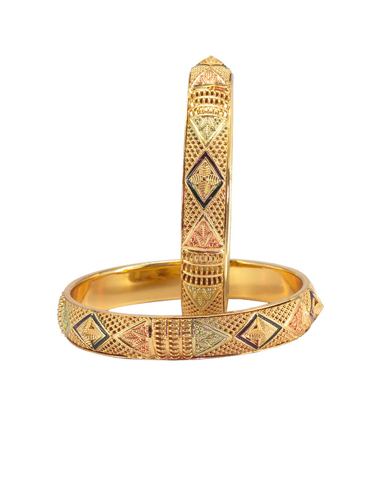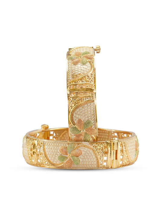 Gold Plated Chunky Floral Meenakari Bangle Pair