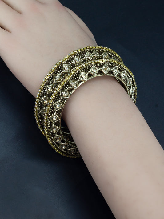 Set Of 2 Brass-Plated Stone-Studded Antique Bangles