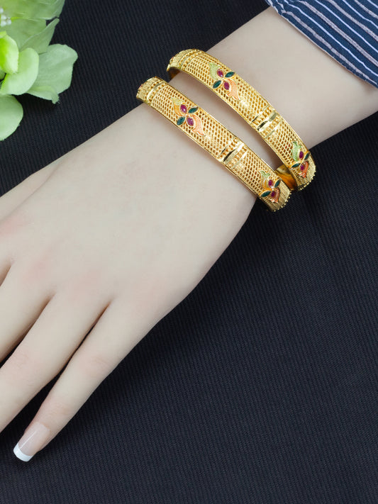 Gold Plated Brass Floral Meenakari Bangle Pair