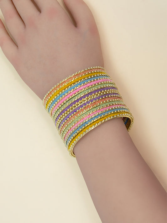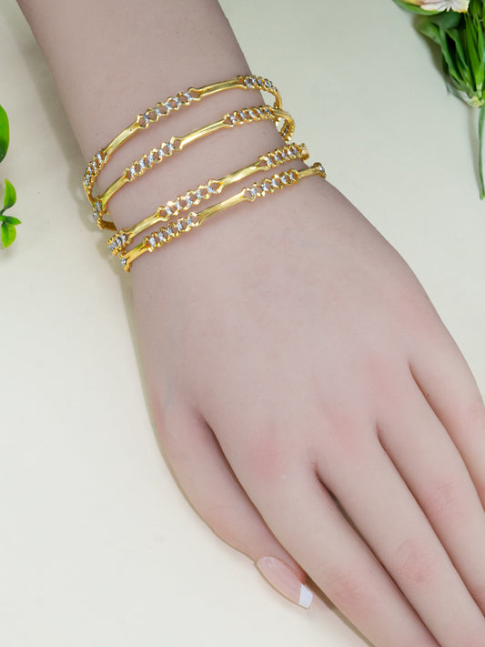 Set Of 4 Brass Stone Studded Anti-Tarnish Bangles