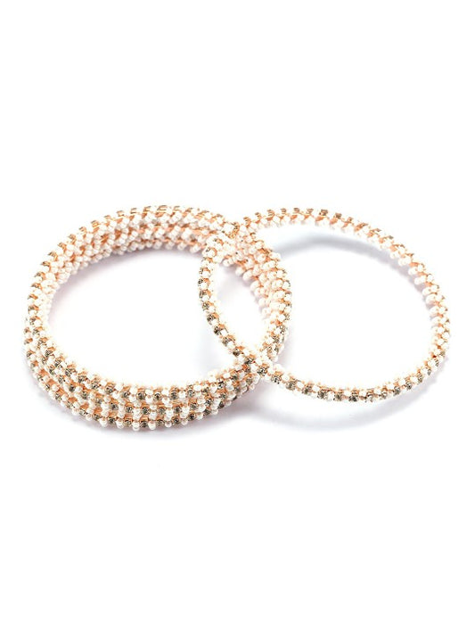 Set of 4 Rose Gold Plated White Beaded Bangles