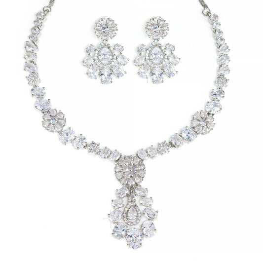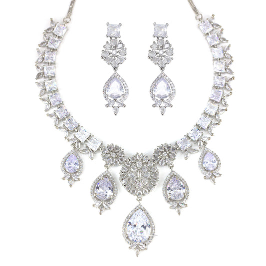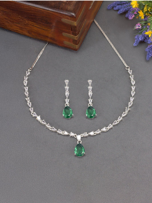 Rhodium Plated Green American Diamond Drop Trendy Jewellery Set
