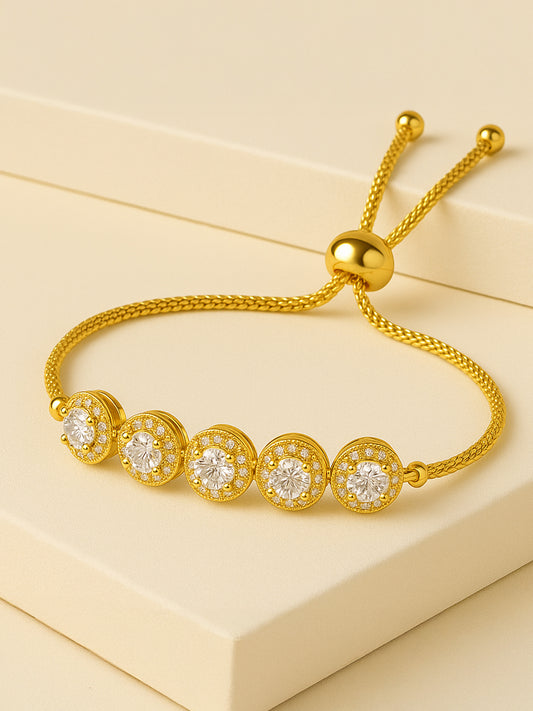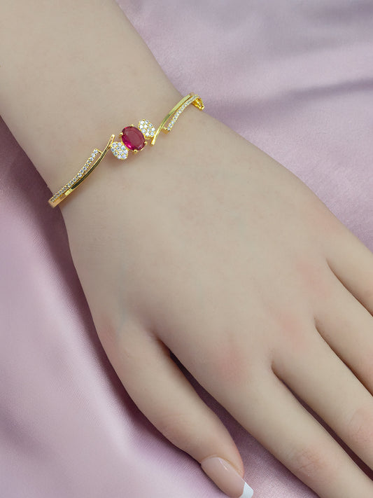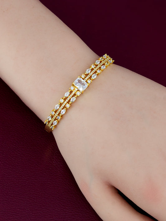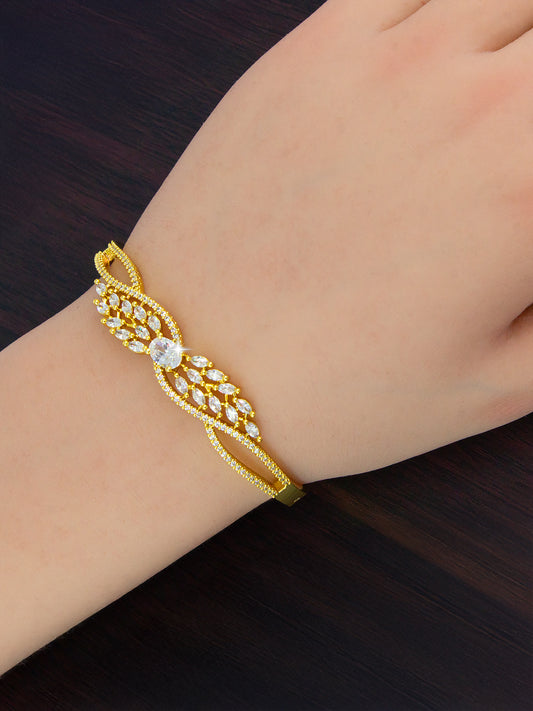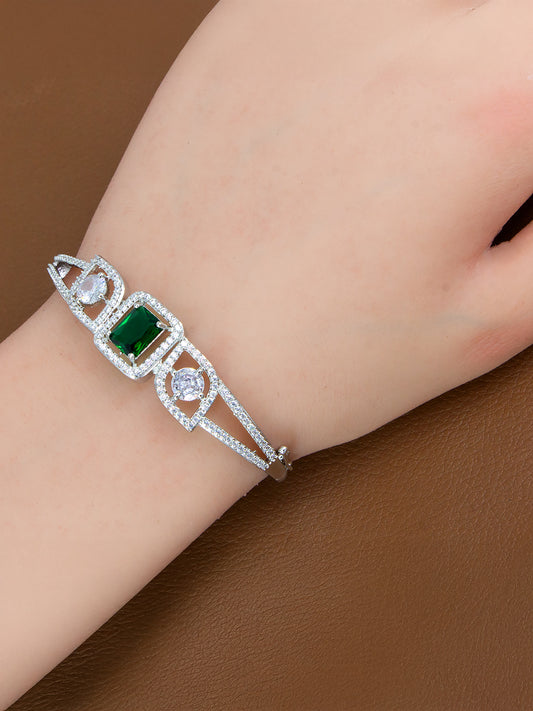American Diamond Gold Plated Petal Design green Bracelet for Women and Girls