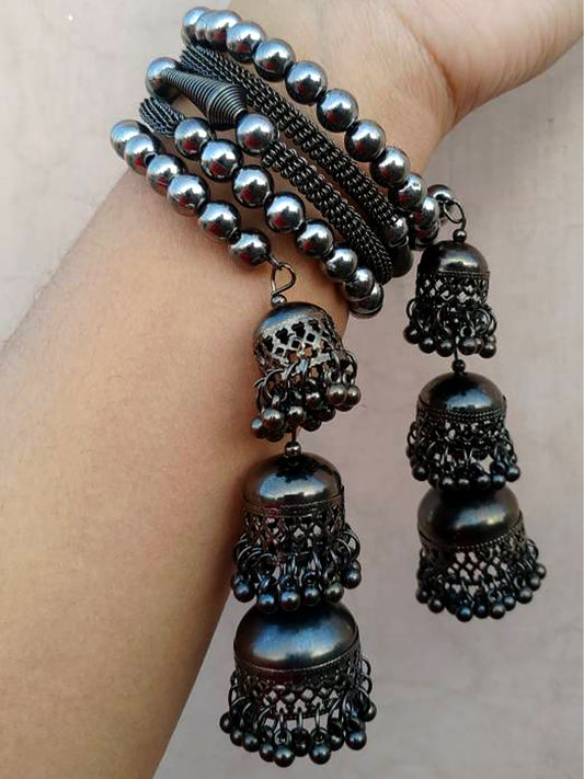 Gun Metal Spiral Beaded Jhumka Wraparound Bracelet Gift For Women