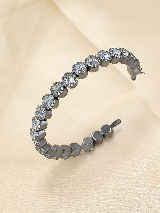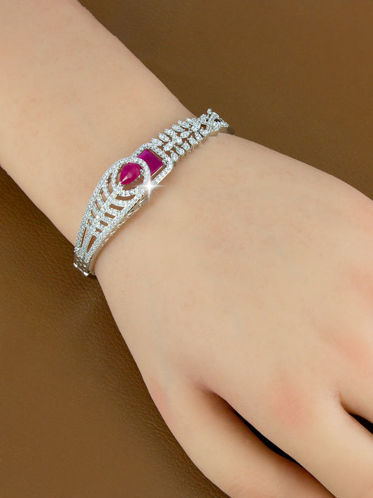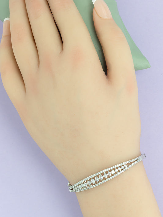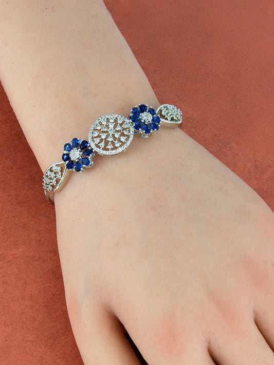 Silver Plated Blue AD Floral Cuff Bracelet For Women