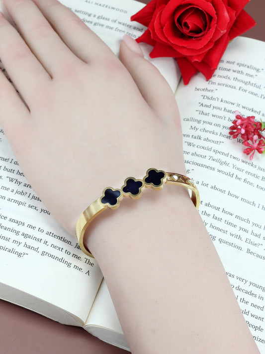 Stainless Steel Anti Tarnish Four Leaf Clover Openable Bracelet