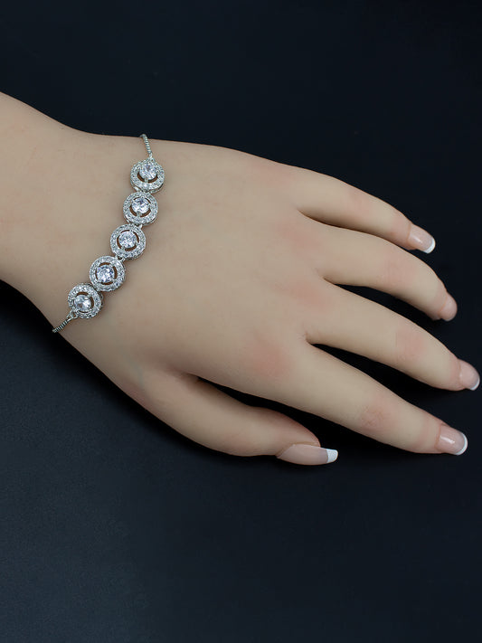 Rhodium Plated American Diamond Studded Bracelet