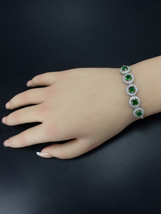 Rhodium Plated Green American Diamond Studded Wraparound Bracelet