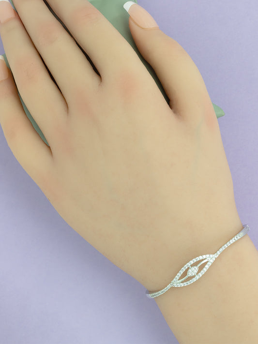 Silver Plated CZ Studded Adjustable Bracelet For Women