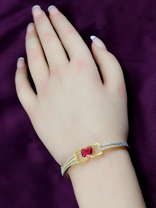 Gold Plated Red American Diamond Studded Bracelet Gift For Women