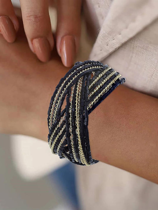 Gold & Black Beaded Cuff Bracelet