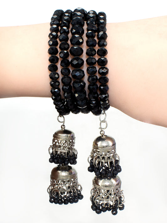 Black Artificial Crystal Beaded Wraparound Jhumka Bracelet Gift For Women