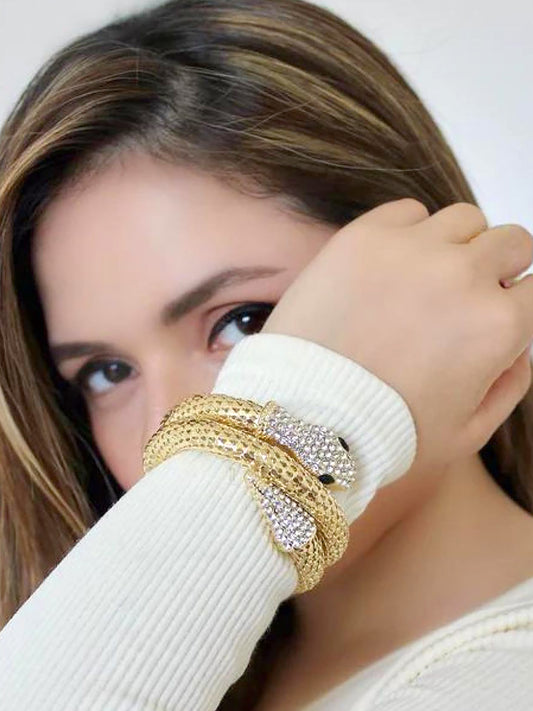 Serpenti Gold Plated & Black Rhinestone Wraparound Bracelet For Women