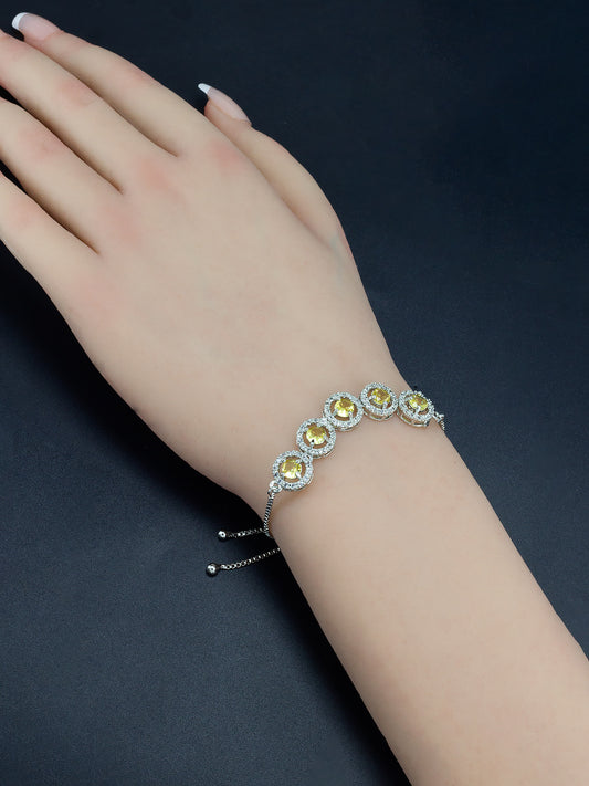 Yellow American Diamond Studded Circular Adjustable Bracelet Gift For Women
