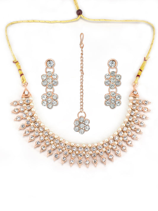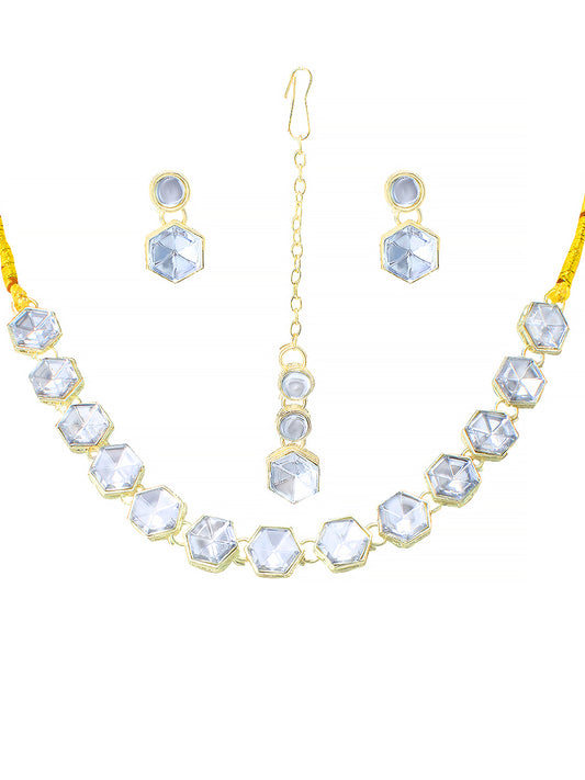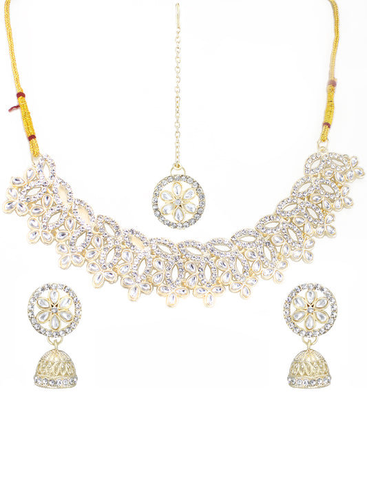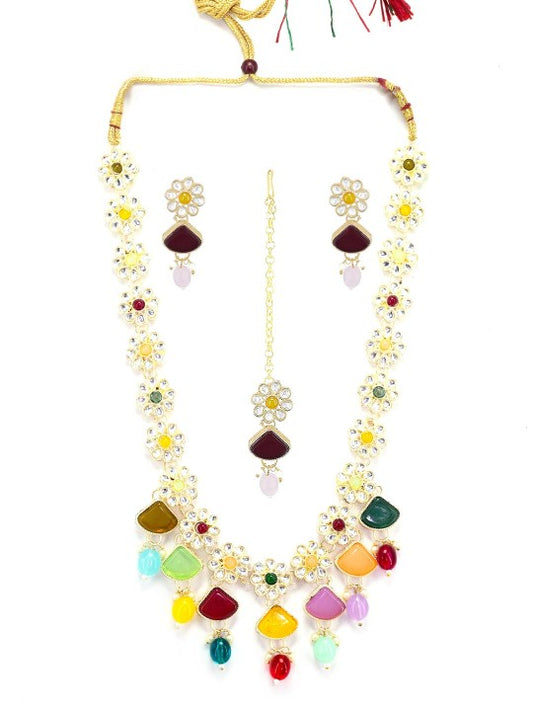 Gold Plated Artificial Stones and Beads Jewellery Set With Maangtika