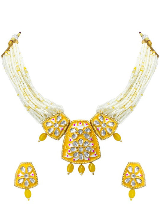 Gold-Plated Crystal Studded & Beaded Jewellery Set With Maangtika