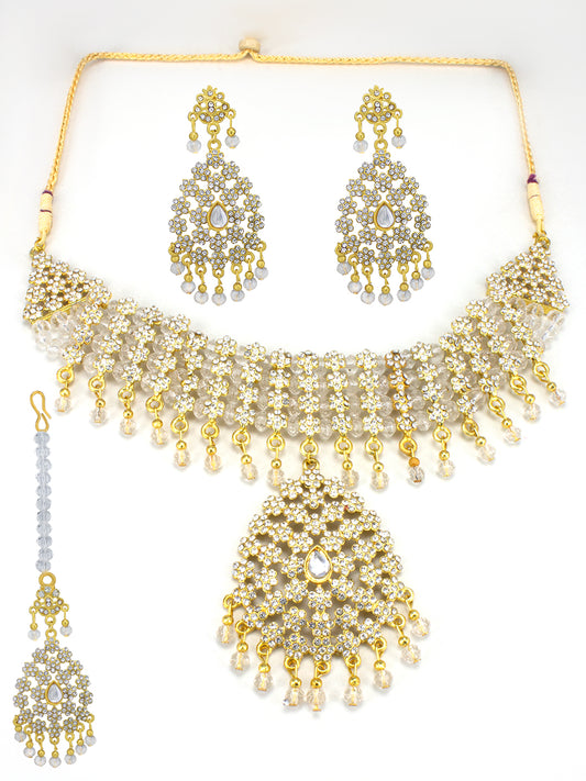 Gold Plated CZ Studded Jewellery Set With Maangtika
