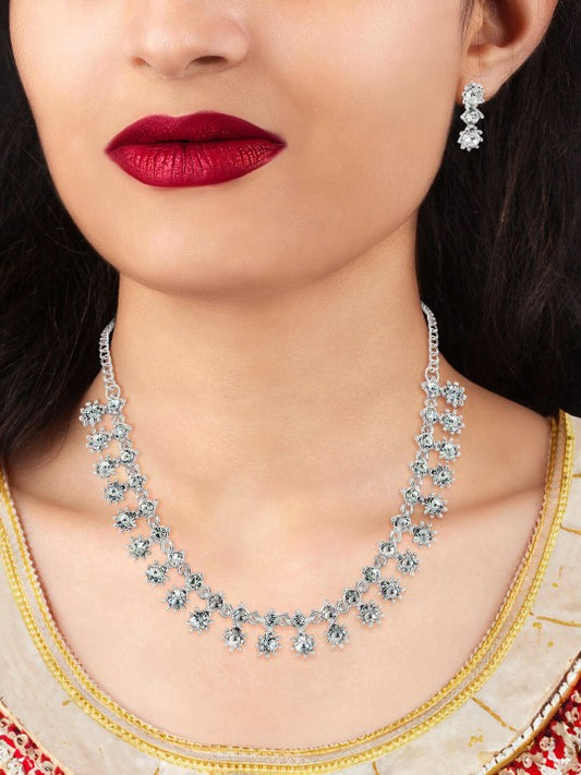 Silver-Plated CZ Studded Jewellery Set
