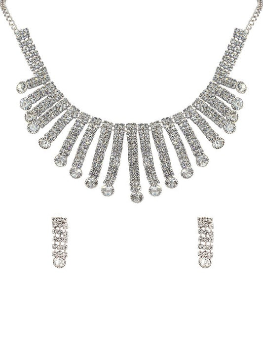 Silver Plated Coin Shaped Rhinestone Studded Jewellery Set