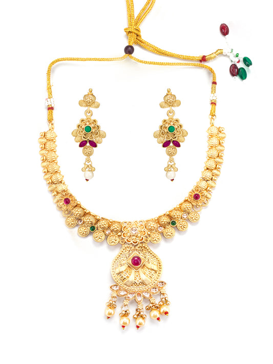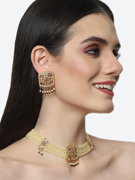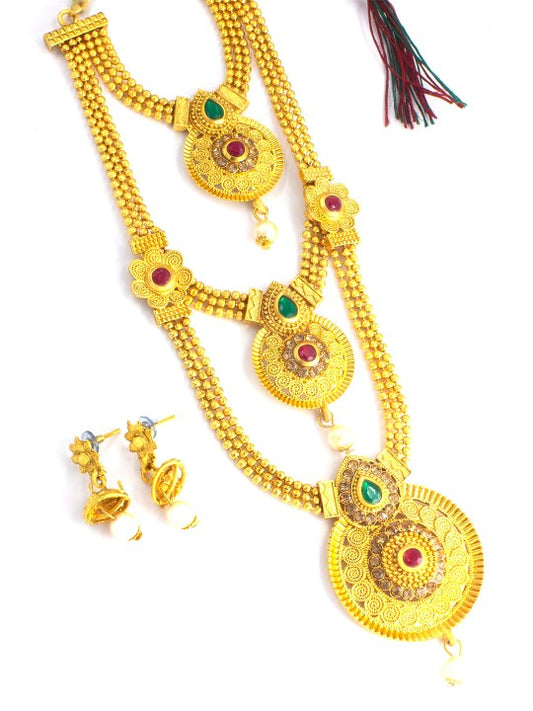 Gold-Plated Three-Layered Stone Studded Traditional Jewellery Set